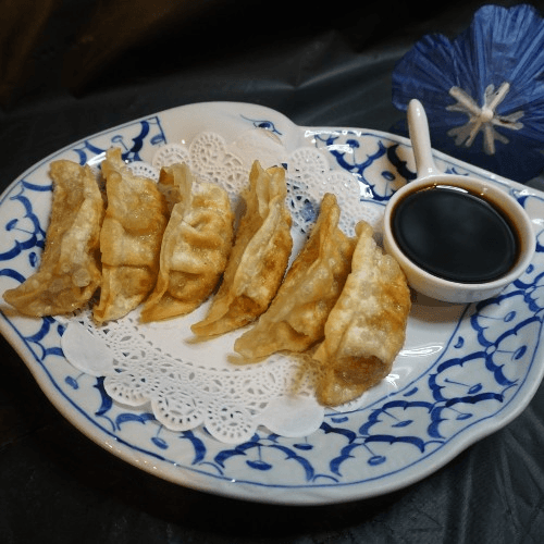 Choice of steamed or fried chicken pot stickers with dumpling sauce, 5 Pieces