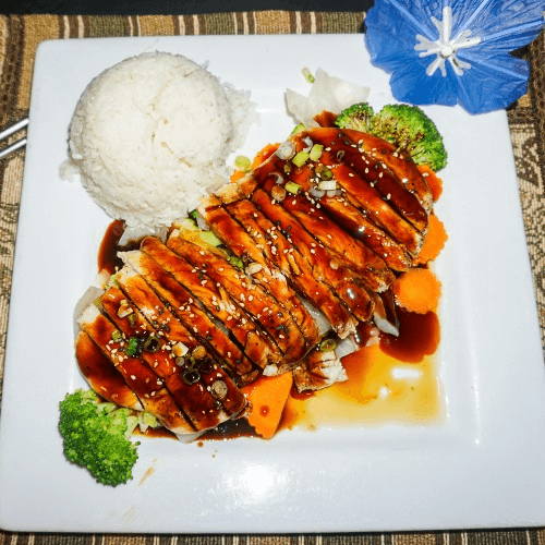 Choice of meat with steamed cabbage, carrot, zucchini, and broccoli in our teriyaki sauce
