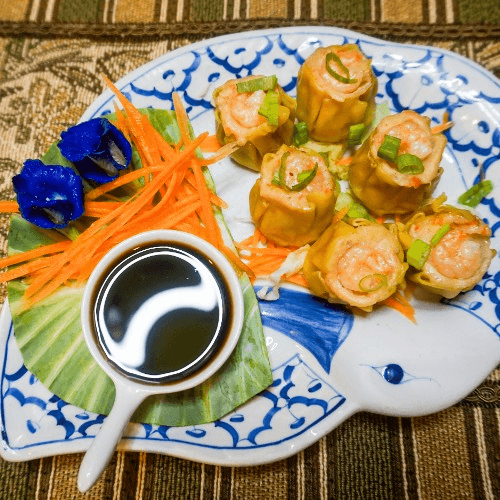 Shrimp & chicken in wonton skin steamed and served with dumpling sauce, 6 Pieces