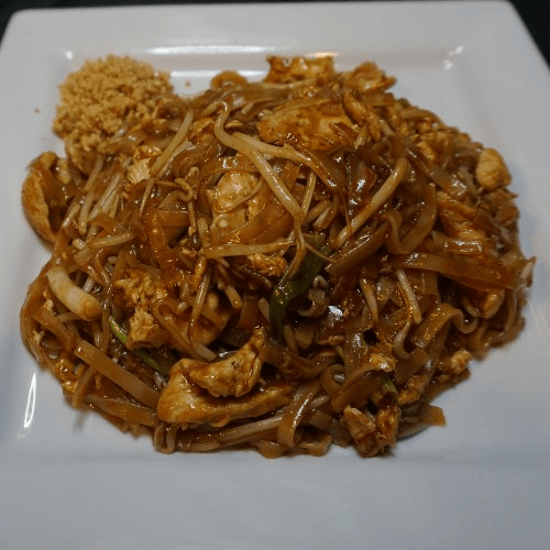 Rice noodle sautéed with bean sprout, scallion, egg & ground peanut with our famous sauce (Voted best in the nation)