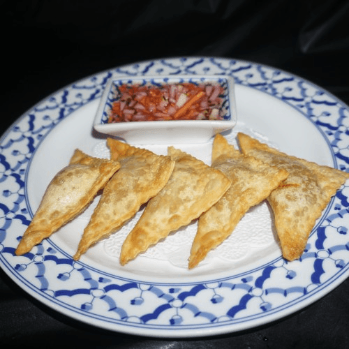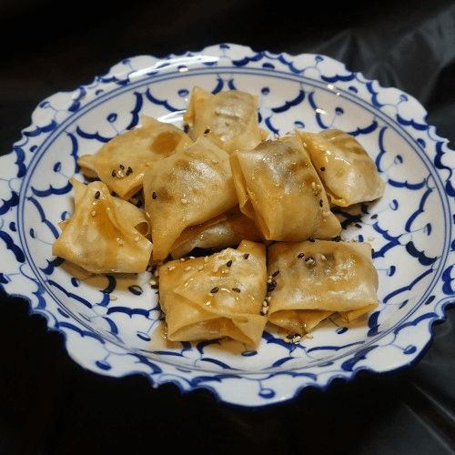 Sweet potato, onion and curry powder wrapped with wonton & served with cucumber sauce, 5 Pieces