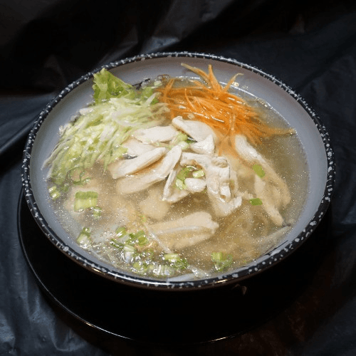Chicken broth with broccoli, cabbage, carrot, zucchini, scallion & garlic oil.