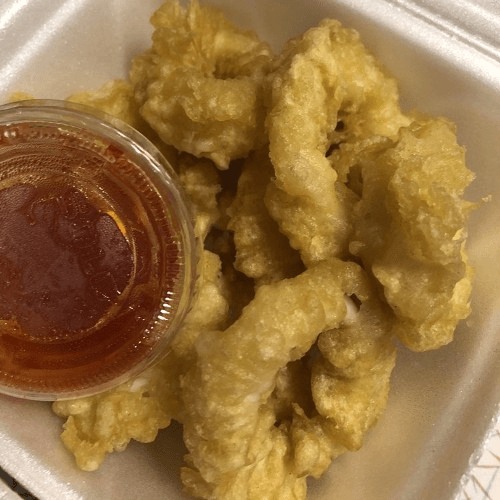 Marinated calamari, lightly fried with sweet chili sauce