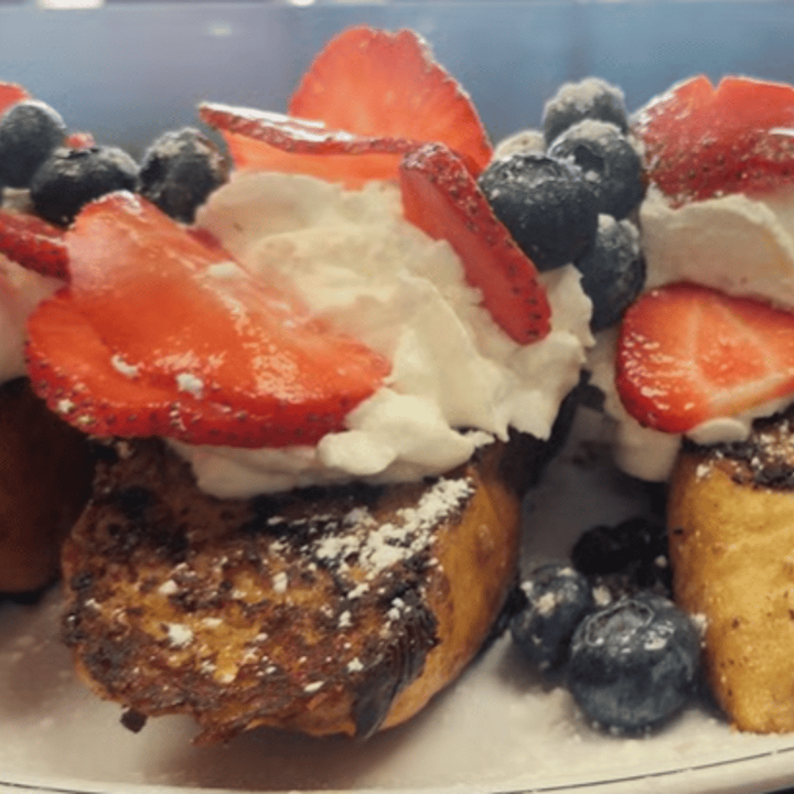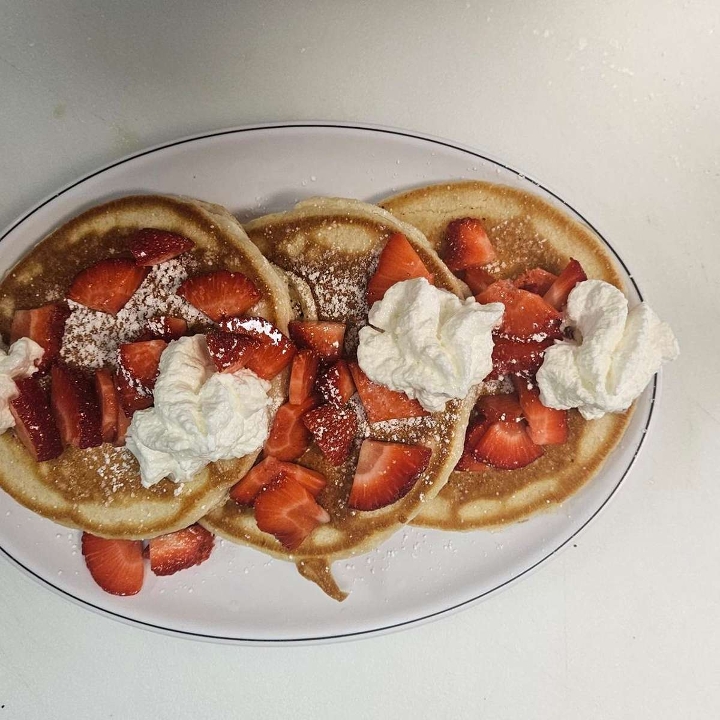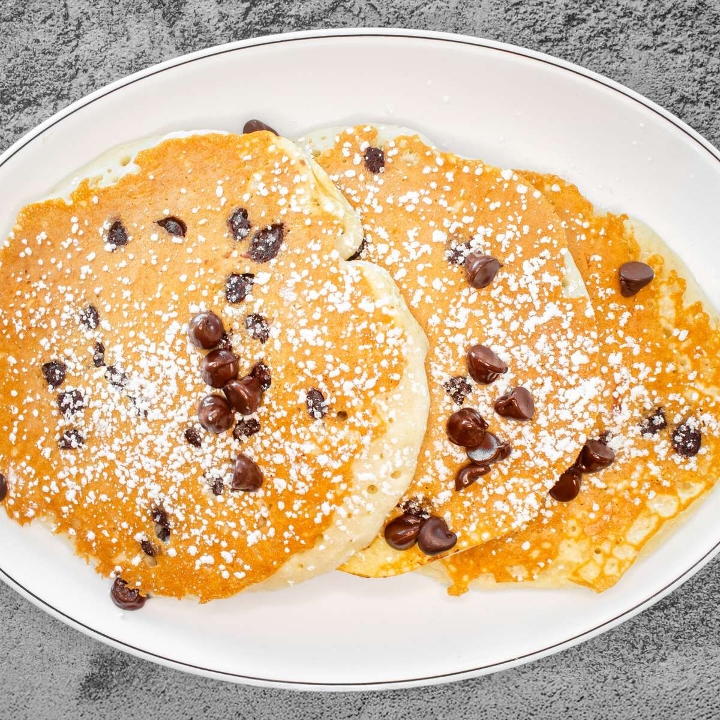 2 homemade pancakes, with your choice of chocolate chips, blueberry's or strawberries with maple syrup