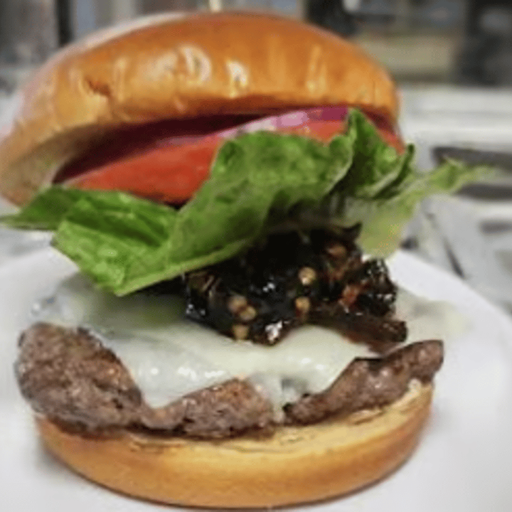 Manchego cheese, candied jalapeños, garlic aioli, lettuce, tomato, & onion
