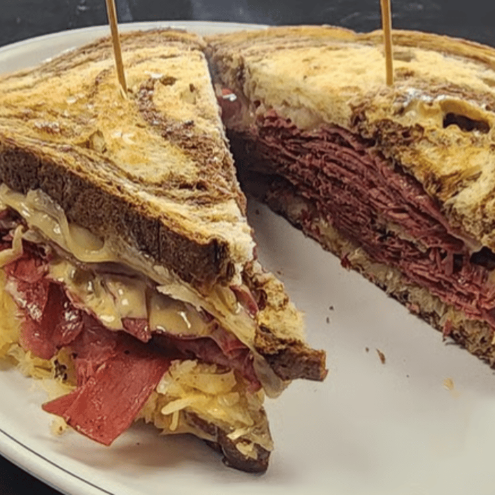 Corned beef, gold label Swiss, sauerkraut, marble rye, & thousand island dressing