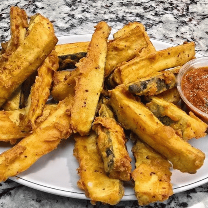 Crispy fried zucchini sticks served with ranch dressing & marinara