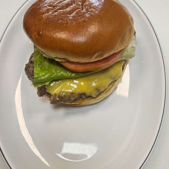Garlic and herb marinated chicken breast, American cheese, lettuce, tomato, onion, pickles, & garlic aioli