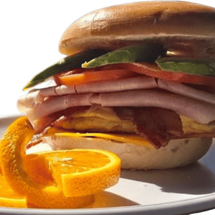 Bacon, avocado, boars head jerk turkey, lettuce, tomato, onion, chipotle Gouda, & chipotle dressing