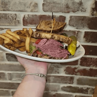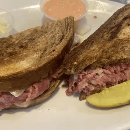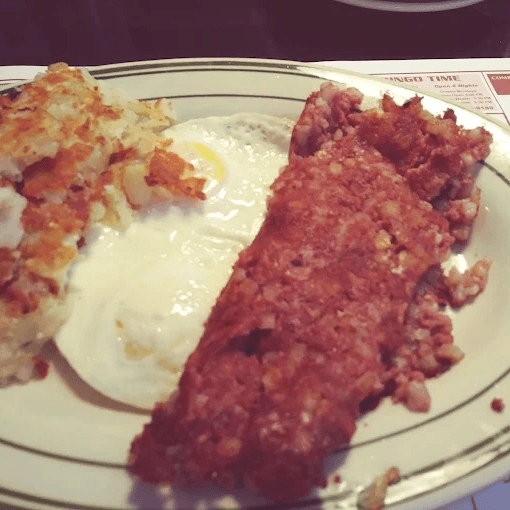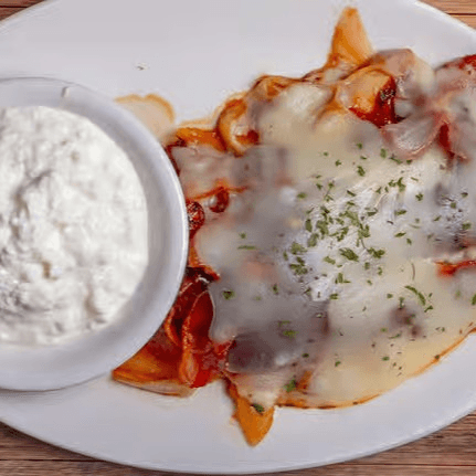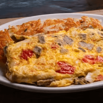 Hash Browns topped with bacon, sausage, scrambled eggs, gravy, and cheese. Served with Vlore Cinnamon Swirl Bread.