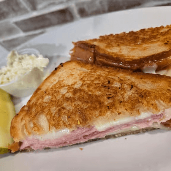Mayo, honey mustard, celery, onion, dill, black pepper, lettuce and tomato. Choice of white, wheat or rye bread