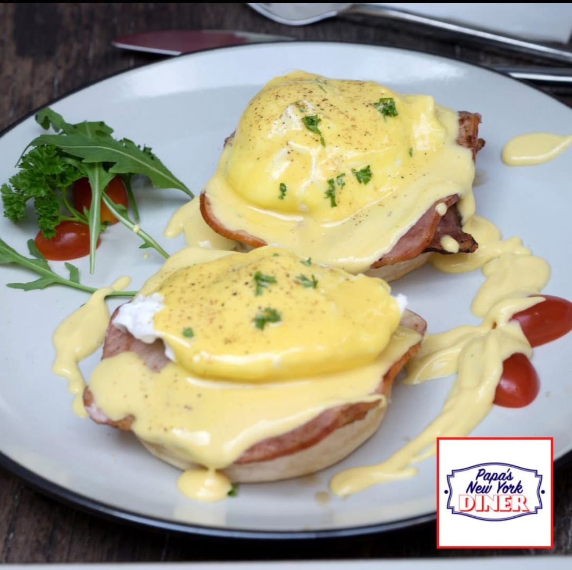 Spinach, tomato, feta, egg and topped with hollandaise sauce