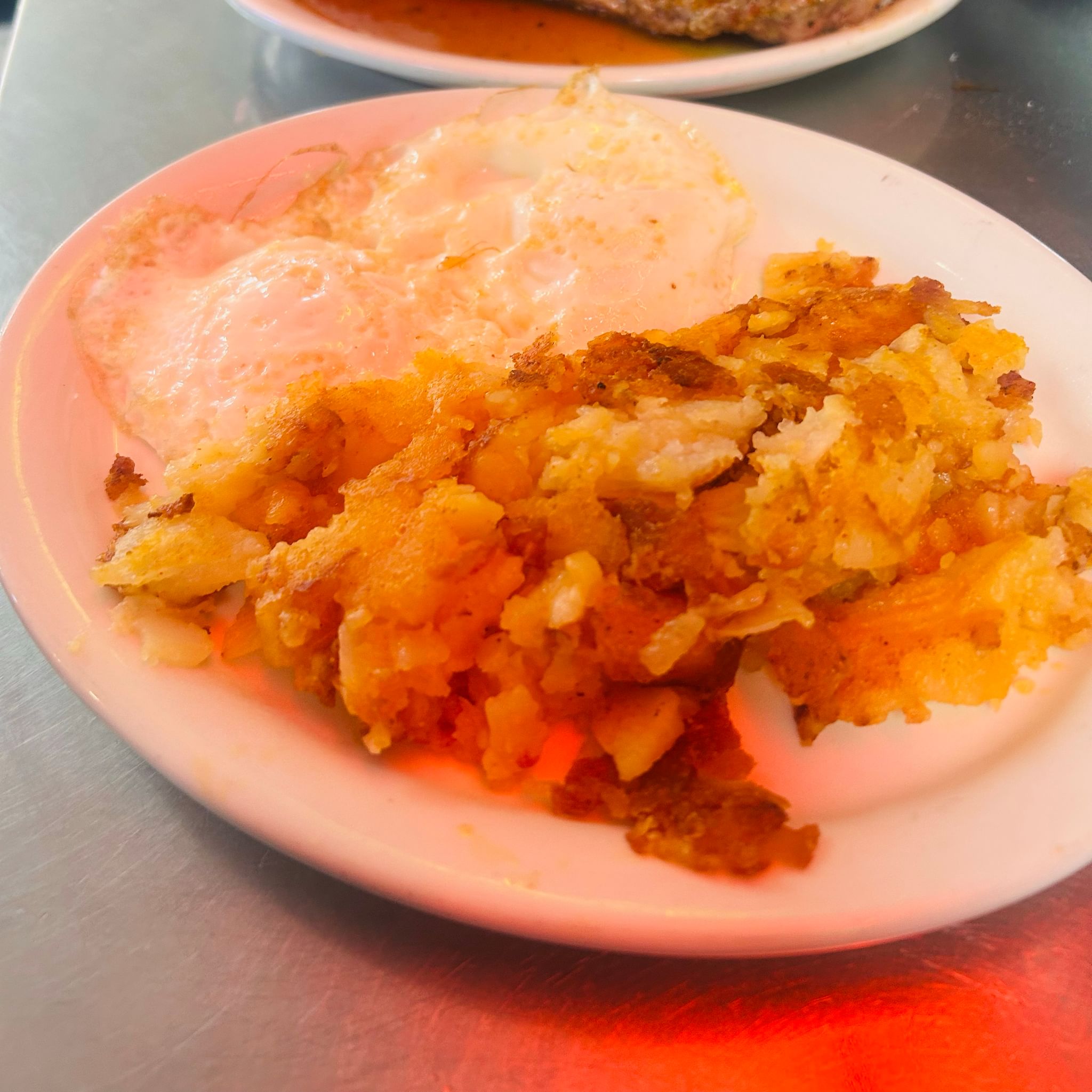 Served over seasoned home fries and choice of toast, English muffin or biscuit
