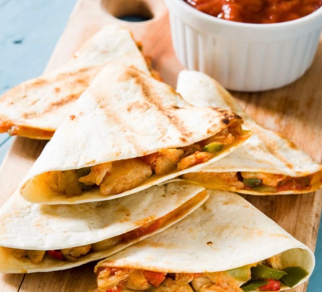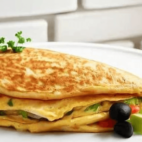 Scrambled eggs, sausage, peppers, onions, cheddar cheese, jalapeños, potatoes, and salsa